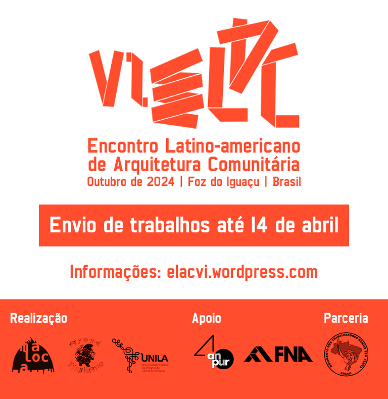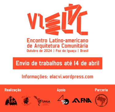 O VI ELAC – Encontro Latino-americano de Arquitetura Comunitária será o primeiro no Brasil, na cidade de fronteira trinacional Foz do Iguaçu (Paraná), entre os dias 14 e 18 de outubro de 2024 – de uma rede de compartilhamento de trabalhos de coletivos e profissionais da América Latina que buscam respostas para as problemáticas da habitação no continente, especialmente através de uma arquitetura de caráter comunitário. Ocorrendo há mais de uma década, o ELAC é um espaço de encontro de grupos de diferentes países latino-americanos: Argentina, Bolívia, Brasil, Chile, Colômbia, México, Paraguai, Peru, Uruguai e Venezuela.