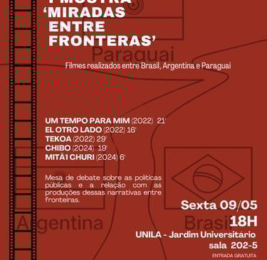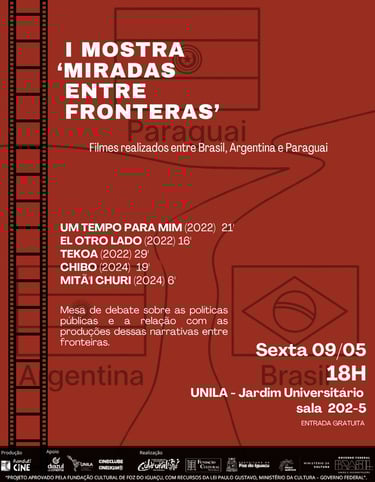 I Mostra Miradas entre Fronteras realizada em 09 de maio de 2025. A mostra apresentou filmes produzidos entre Brasil, Argentina e Paraguai, frutos de uma pesquisa coletiva desenvolvida por estudantes, professores e egressos do Curso de Cinema e Audiovisual.